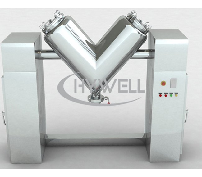 ● V型混合机用于对粉体均匀混合。适用于制药、食品、化工、冶金、电子等行业对两种以上的干粉状、颗粒状物料的混合。